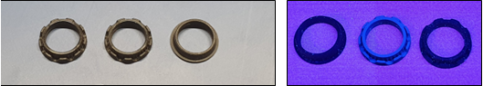 Este tipo de resinas no se pueden detectar ante la incidencia de luz perteneciente al espectro visible. Sin embargo, cuando se irradia con luz ultravioleta emiten un color azulado, permitiendo así realizar una binarización para discriminar objetos con resina y realizar un chequeo de calidad, que de otra manera sería mucho más costoso.