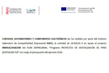 ContinuarContaval ha recibido del Instituto Valenciano de Competitividad Empresarial IVACE apoyo al proyecto IMDIGA/2018/108 del PLAN EMPRESARIAL “Programa PROYECTOS DE DIGITALIZACIÓN DE PYME (DIGITALIZA-CV)”.