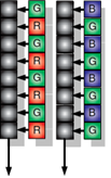 El proceso anterior es válido para cámaras de tipo monocromático, para las cámaras de tipo color se debe utilizar el filtro Bayer, propuesto por Bryce E. Bayer de la empresa KODAK hace más de 40 años, que tuvo la idea de colocar filtros de color en la parte superior de los píxeles de un sensor B/W de esta manera únicamente se deja pasar la cantidad de luz determinado por una banda de longitudes de onda que se corresponde con los colores primarios (Rojo, Azul y Verde con predominancia de este último).