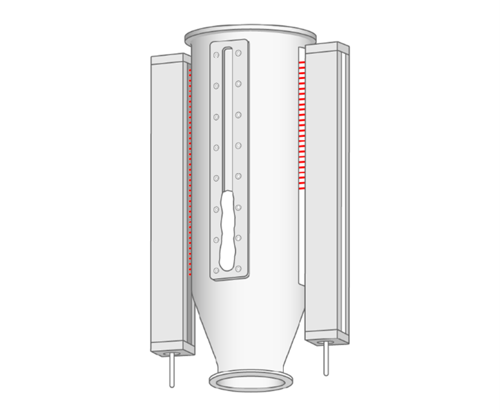La cortina ofrece una salida analógica bifilar de 4-20 mA o 0-10 V, y hasta 4 salidas digitales individuales, que pueden ser configuradas individualmente mediante diversas opciones de condiciones de medición y salida.