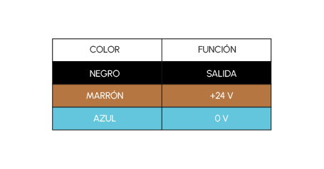 Tomamos como ejemplo un sensor de tres hilos en los que sigue el siguiente código de colores: