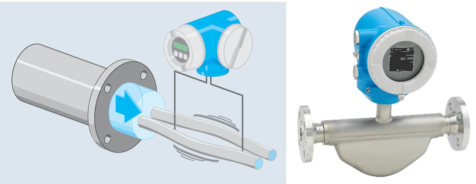 Estás diferencias pueden relacionarse directamente con una medida directa de caudal másico. Además, estos equipos son capaces de medir la densidad del fluido a partir de la frecuencia de oscilación de los tubos de medición.