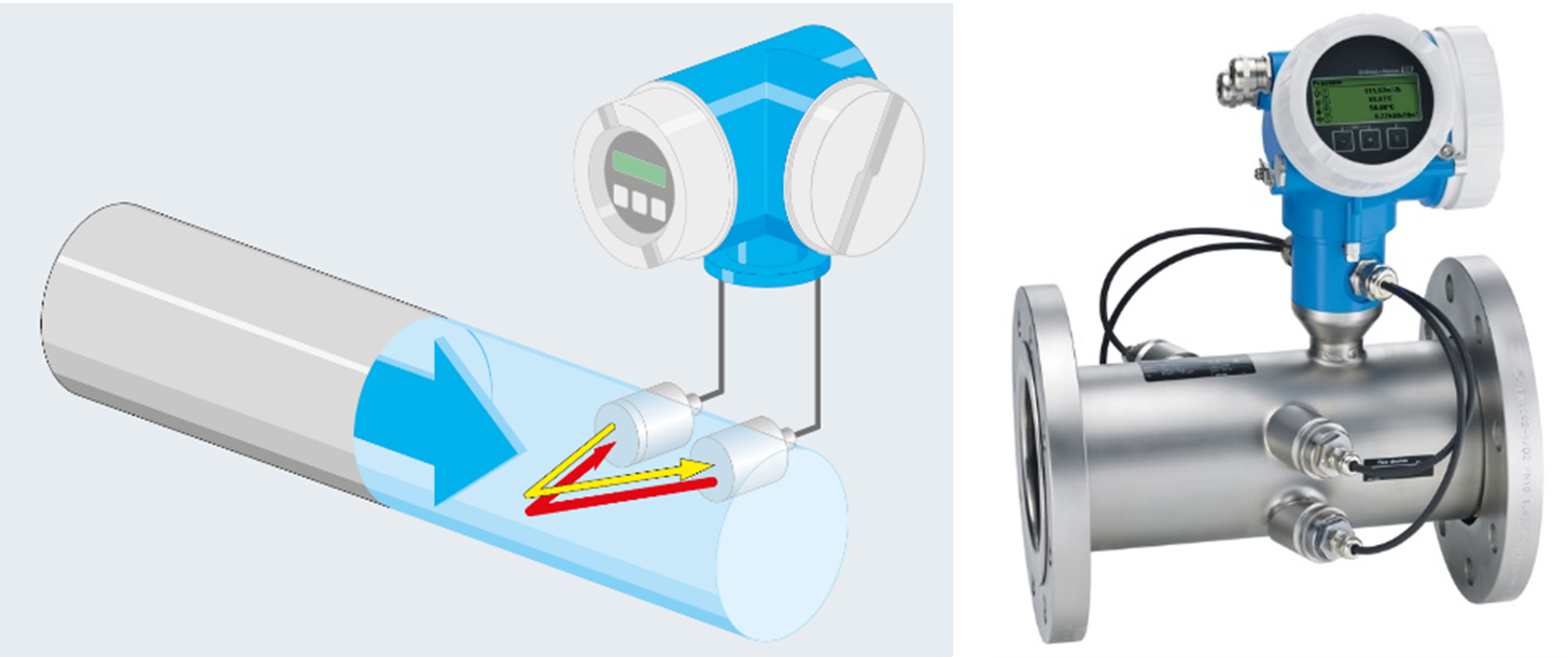 Existen caudalímetros por ultrasonidos basados en el método de tiempo de tránsito y en el efecto Doppler. Sin embargo, nos quedaremos con el primer principio de funcionamiento ya que el caudalímetro por efecto Doppler requiere que el fluido contenga partículas, burbujas de gas u otras homogeneidades similares.