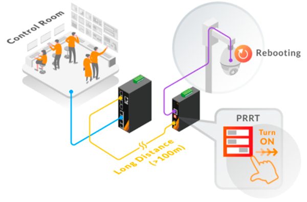 Habilitar la función PRRT (PD Remote Reset Technology) puede ahorrarle horas de trabajo, kilómetros y mucho esfuerzo. Simplemente coloque un conversor de medio PoE BT entre el PD y el PSE. De esta manera, podrá resetear fácil y remotamente sus dispositivos PD.