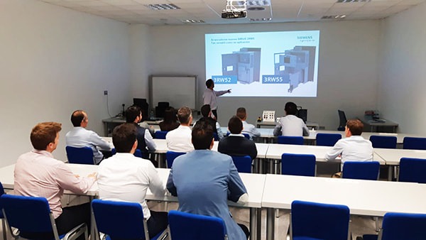El pasado viernes 24 de Mayo, tuvimos la ocasión de formar a toda nuestra red comercial y de responsables de producto, en los nuevos arrancadores suaves 3RW5 de SIEMENS.