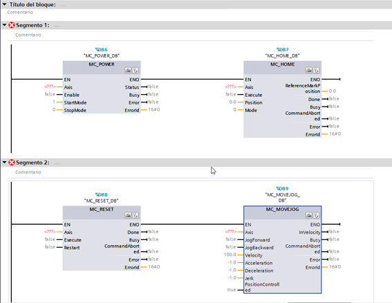 Las funciones necesarias para poder programar debidamente, cada uno de los ejes, serían las siguientes: