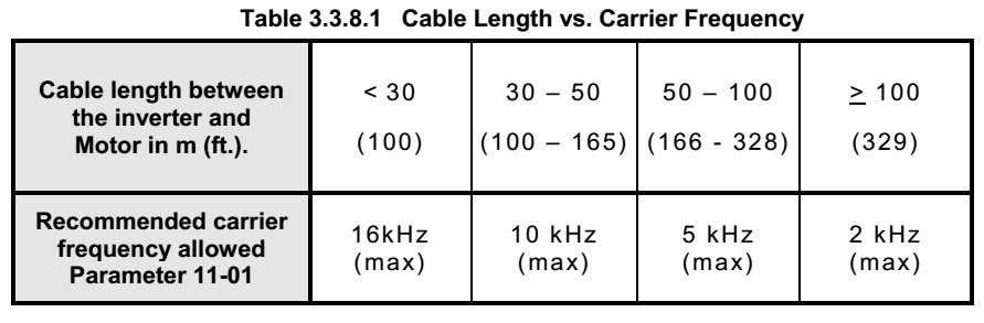En la tabla anterior se muestran las distancias que permite sin instalación de periféricos adicionales, modificando solo la frecuencia portadora en el parámetro 11-01.