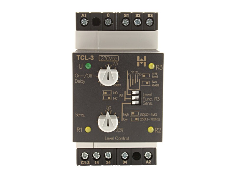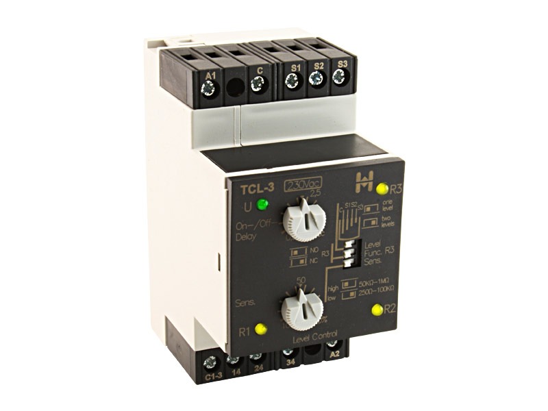 Relé de Nivel 2 ó 3 consignas, líquidos conductivos Serie TCL-3
