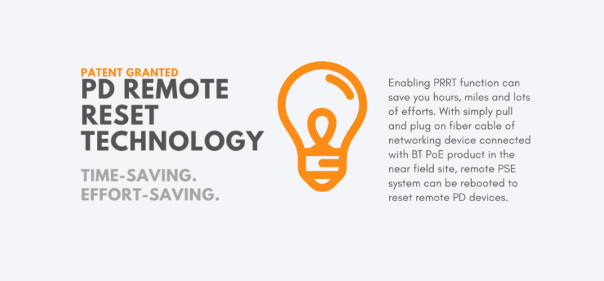 Leonton presenta la patente PRRT, PD Remote Reset Technologies, que ha sido validada por la Oficina de Propiedad Intelectual del Ministerio de Asuntos Económicos de Taiwán. PRRT reactiva el conversor del otro extremo simplemente con desconectar y conectar de nuevo el cable de fibra en el conversor más cercano, haciendo posible el reinicio remoto y sin ningún esfuerzo. Ahora, podemos solucionar un primer nivel del problema usando PRRT y solo enviar al ingeniero de campo si este reinicio no ha solucionado el problema.