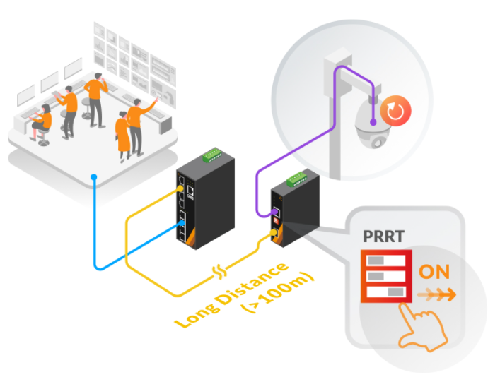 Disponer de conversores de medio en la red es una manera fácil de transferir datos y saltar la barrera de los 100 metros de los puertos de cobre. Estos conversores se usan normalmente en aplicaciones de larga distancia, por ejemplo, en sistemas inteligentes de transporte en autopistas que pueden tener decenas de kilómetros de un punto a otro. Por ello, los conversores de medio sirven como herramienta para alcanzar largas distancias y conectar con diferentes interfaces. Pero los largos cables de fibra tienen un inconveniente, y es su mantenimiento. Conducir un par de horas hasta el dispositivo final tiene costes de personal, de tiempo, entre otros.