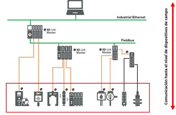 IO-Link se crea porque los sistemas de comunicación clásicos no llegan hasta el nivel de actuador/sensor. Hay una necesidad de conocer los datos de campo, lo que está pasando a nivel de sensor/actuador, ya que los buses de campo sólo llegan hasta el nivel de PLC o periferia.