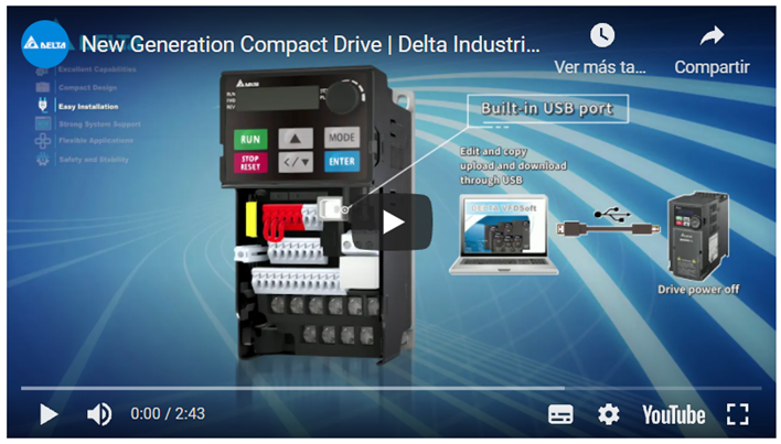 En resumen, la nueva serie de variadores de frecuencia de Delta Electronics MS300 permite reducir el tiempo de instalación y el cableado, minimizar el tamaño, y a su vez proporcionar una alta eficiencia y un sistema estable. De esta manera, estos componentes se convierten en pieza clave para mejorar la competitividad del mercado y asegurar el éxito de la aplicación.